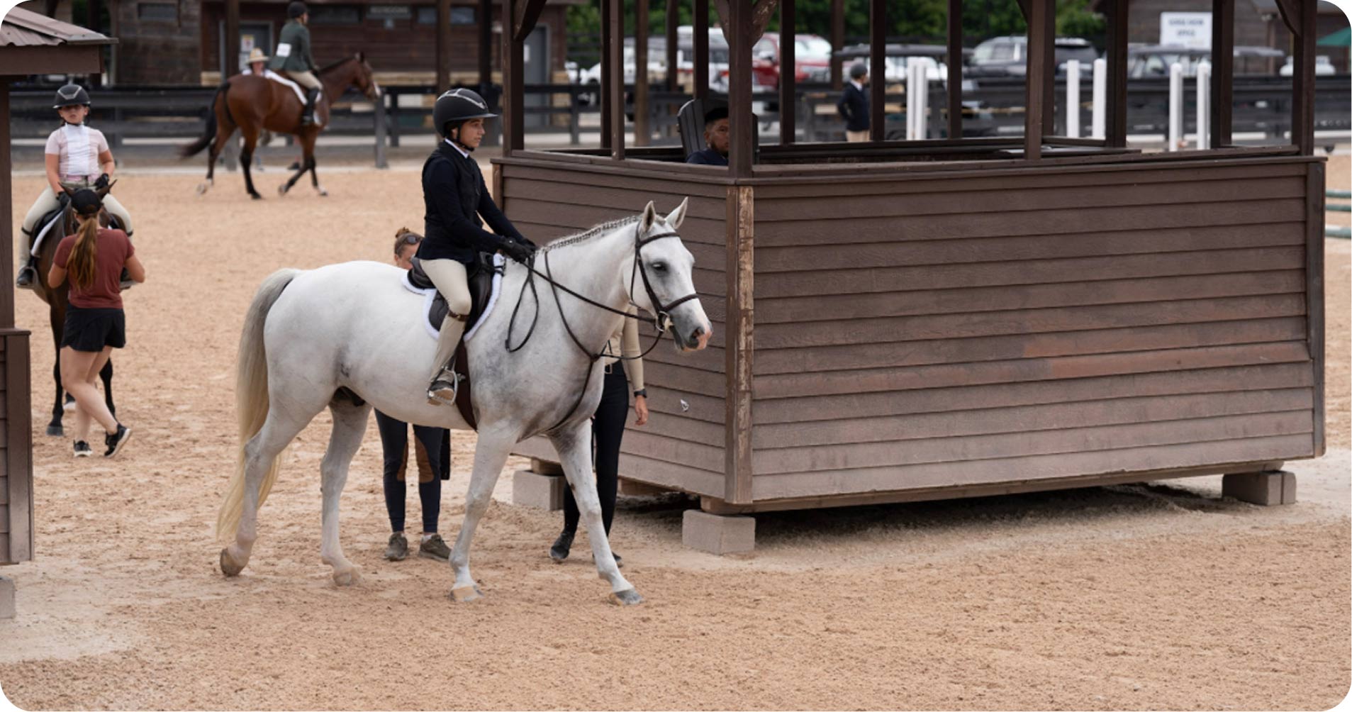 When I was younger, I loved horses and wanted to try riding. My dad had a friend who owned horses, so he called them and asked for the biggest horse they had. He put me on him, and I started sobbing. A few years later, I asked if I could try again, and I smiled. We came to Rivers Edge to start riding because I loved it.